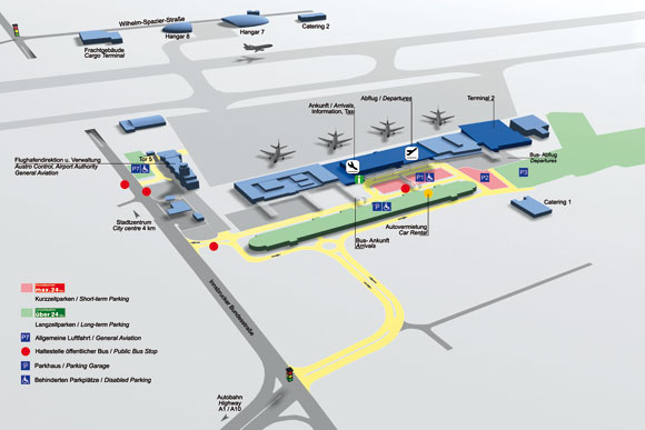 To get from the airport to the city centre and to your hotel use city bus no. 2 (direction: Obergnigl). The red dots on the map below show the bus stops at the airport. There are also signs at the airport.